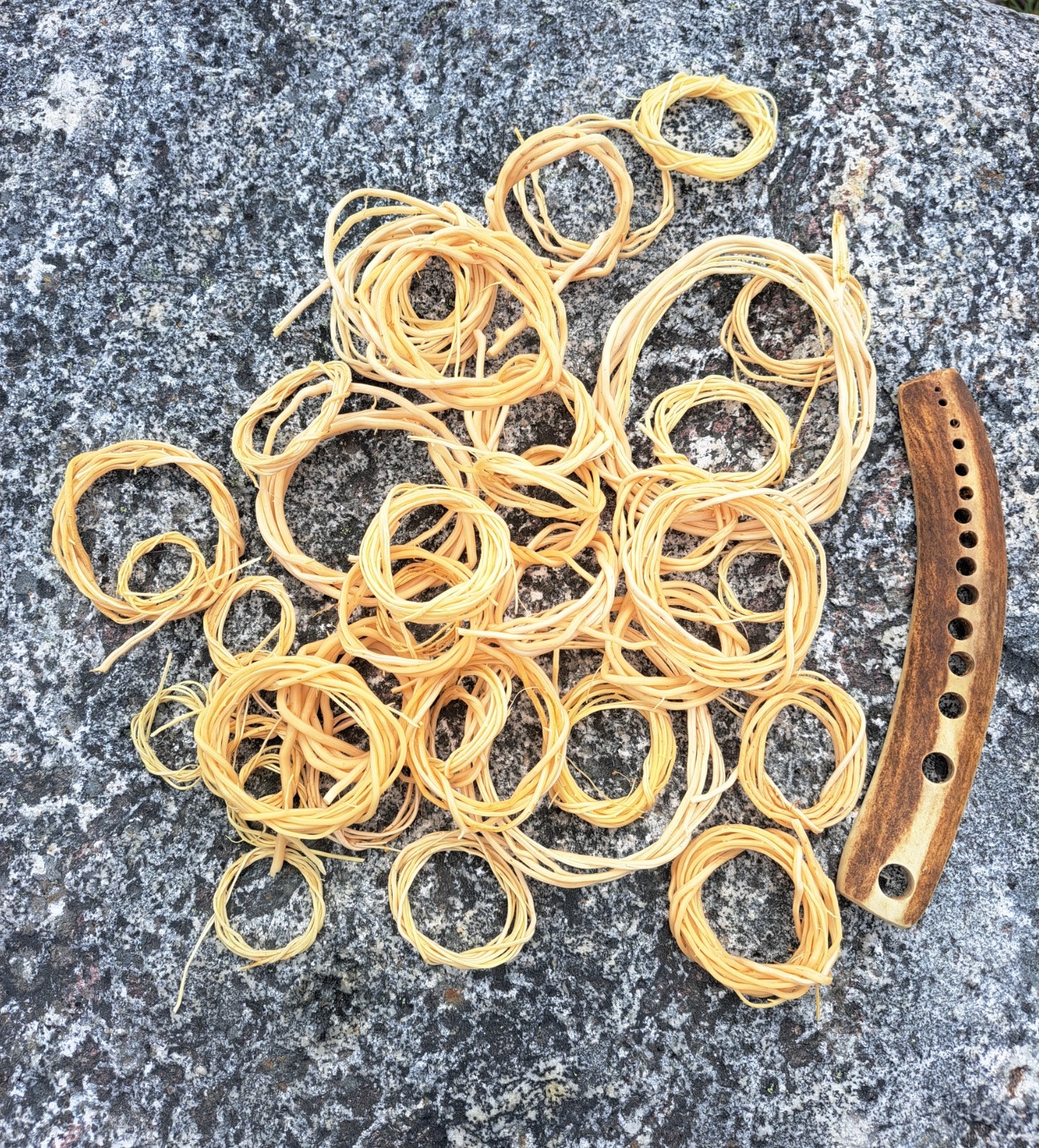 During summer and autumn when our reindeer roam up North, I spend my time in the woods harvesting nature materials and work with my handcrafts. I gather food for our reindeer, I fish and I take care of our veggiegarden.