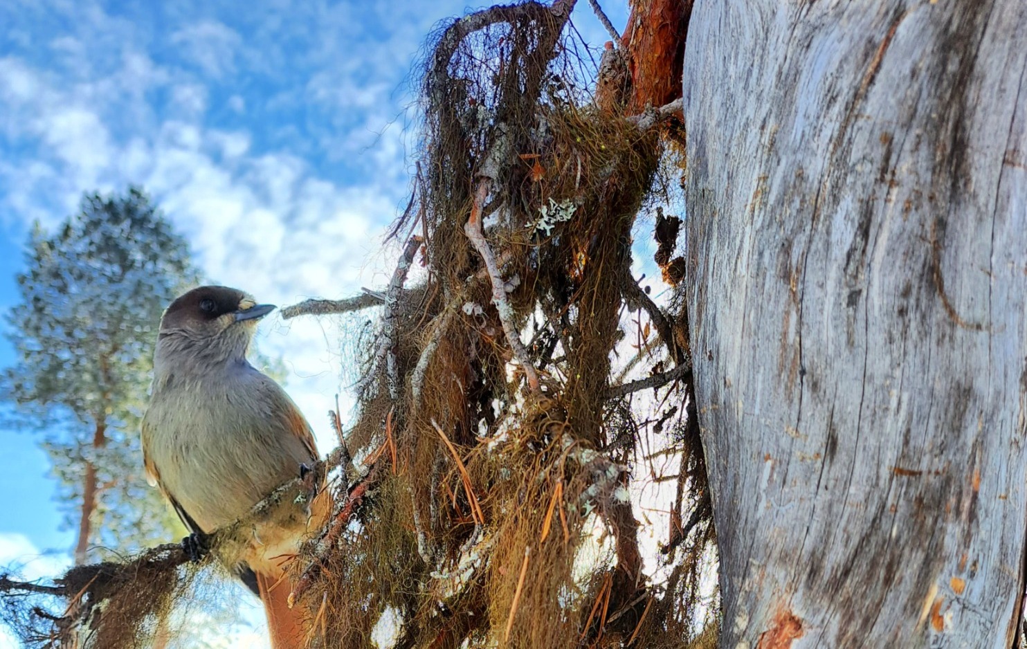 Anne hanging up a new birdhouse for the Golden eye. Golden eyes have been nesting succesfully at our reindeer farm for 13 years. Anne builds the birdhouses by herself from leftover materials.